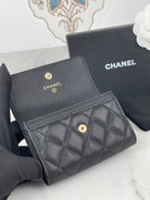 CC FLAP CARD HOLDER 11 BLACK GRAINED CALFSKIN GOLD ICON