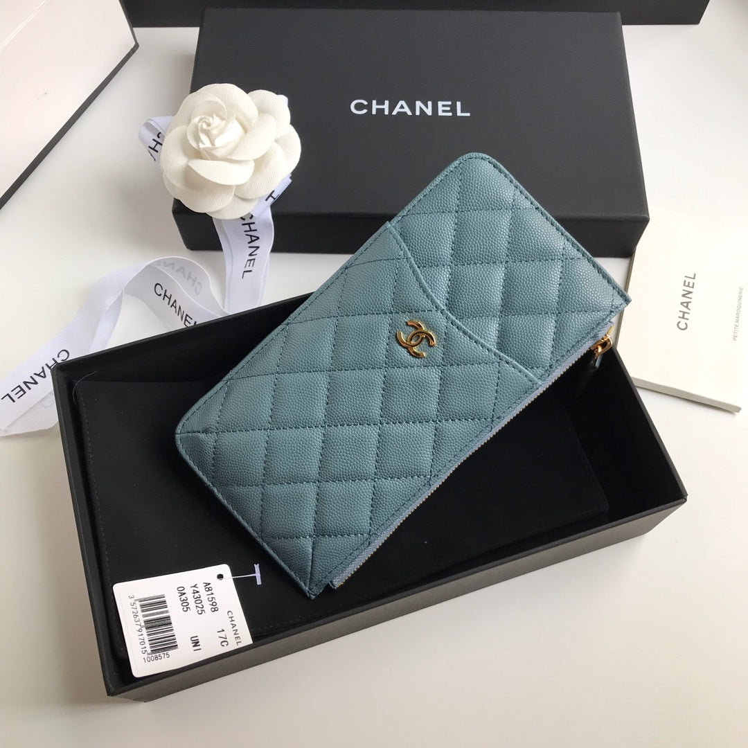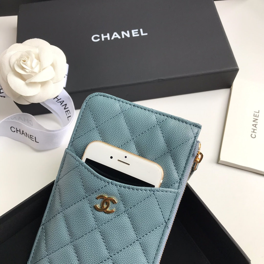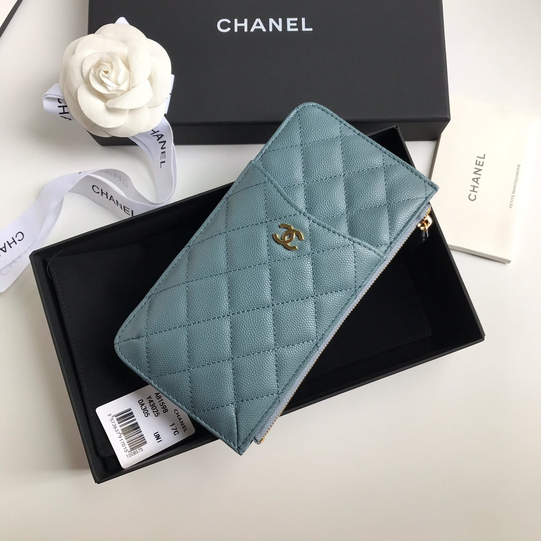 CC MOBILE PURSE 19.5 SAPPHIRE GRAINED CALFSKIN GOLD ICON