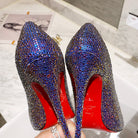 CL Kate Strass Degrade Pumps 100mm Suede Blue