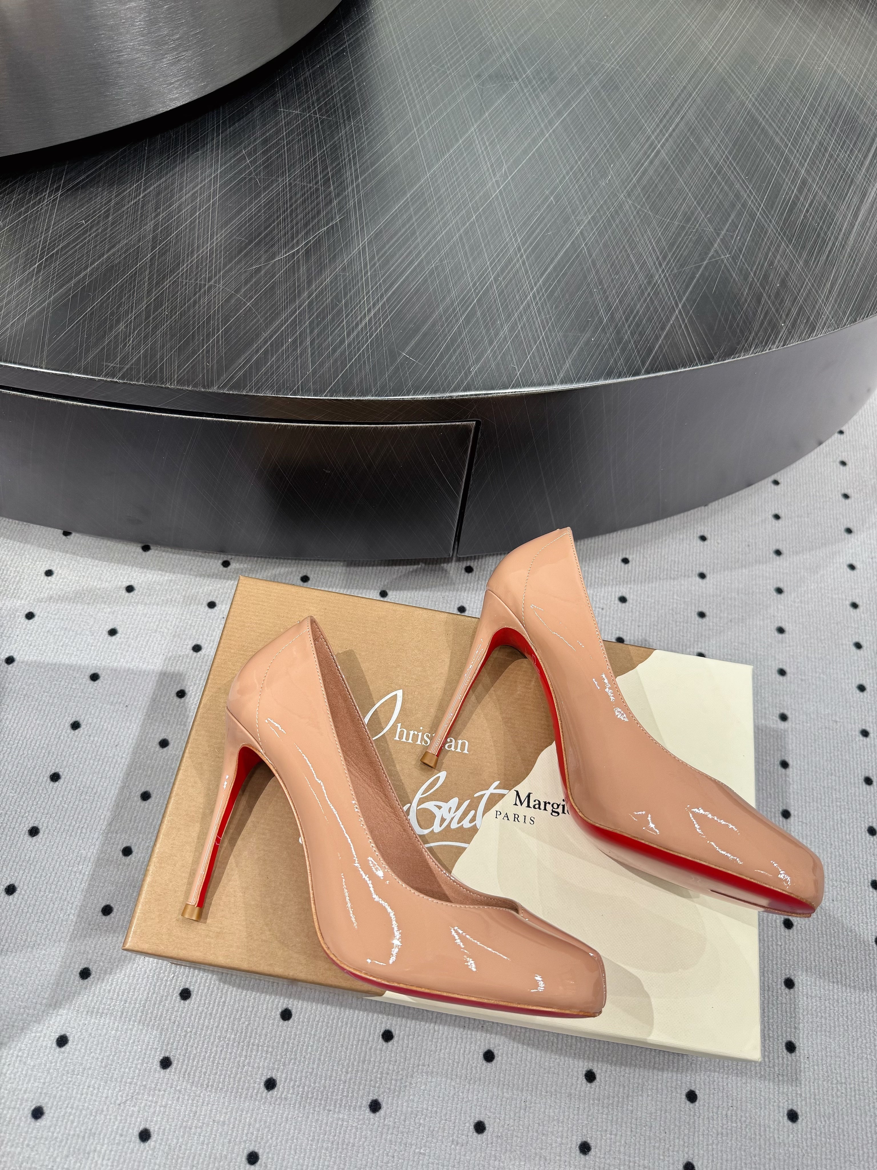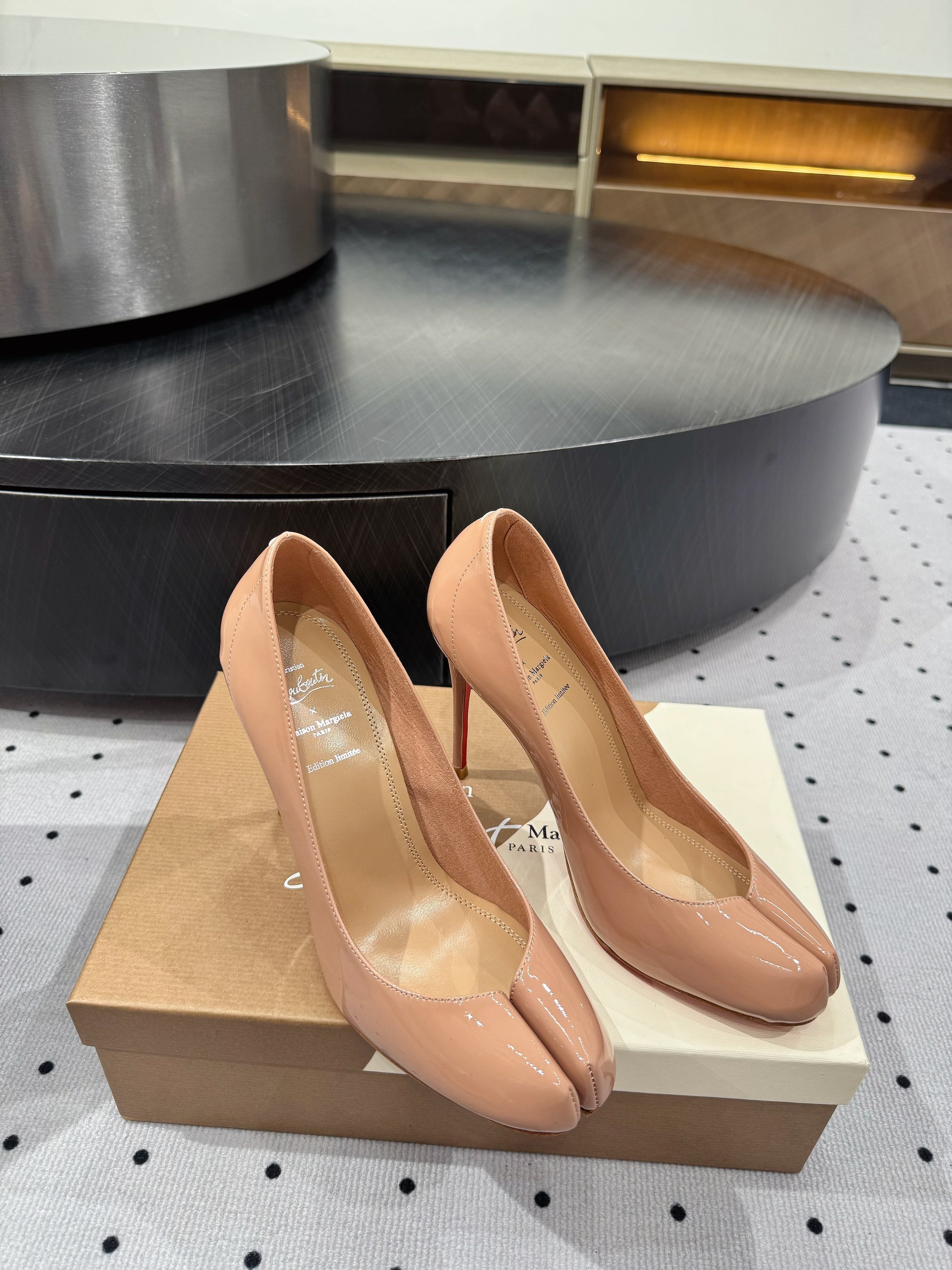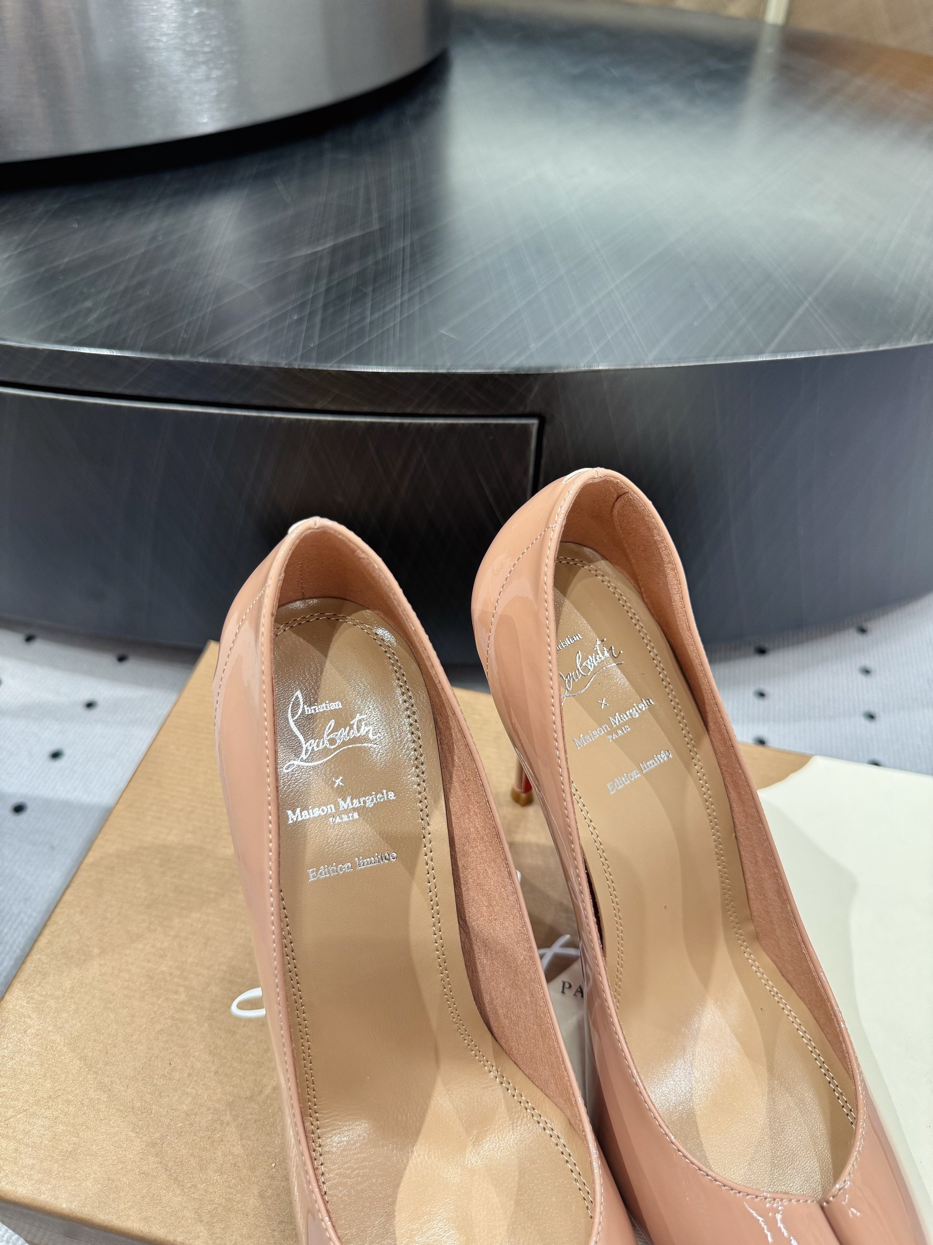 CL x Margiela 25 Pumps Beige 10cm Patent Leather 296037