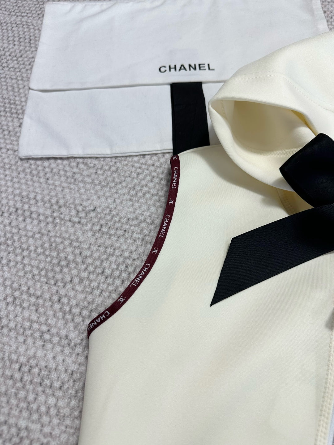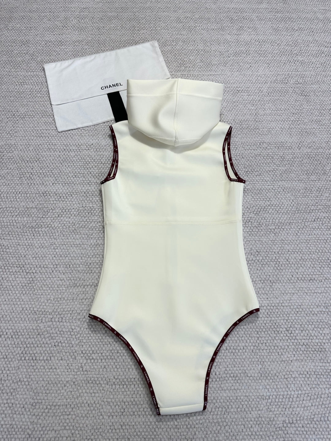 CC 25 Bow Hooded Swimsuit Ivory Polyester Fiber