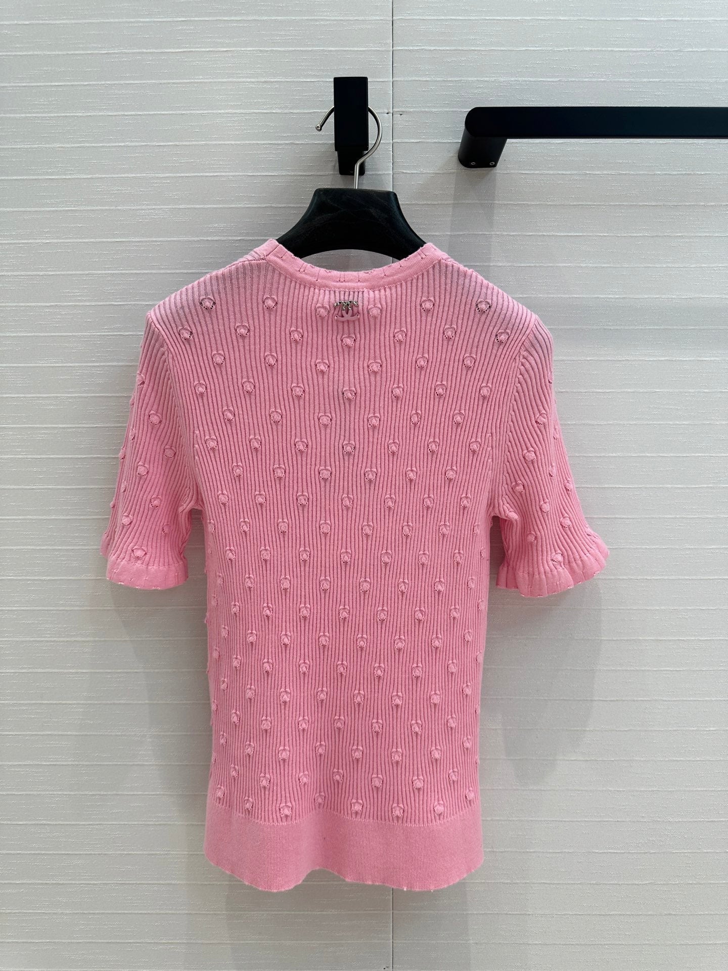 CC 25 Hollow Knitted T-shirt Pink cotton