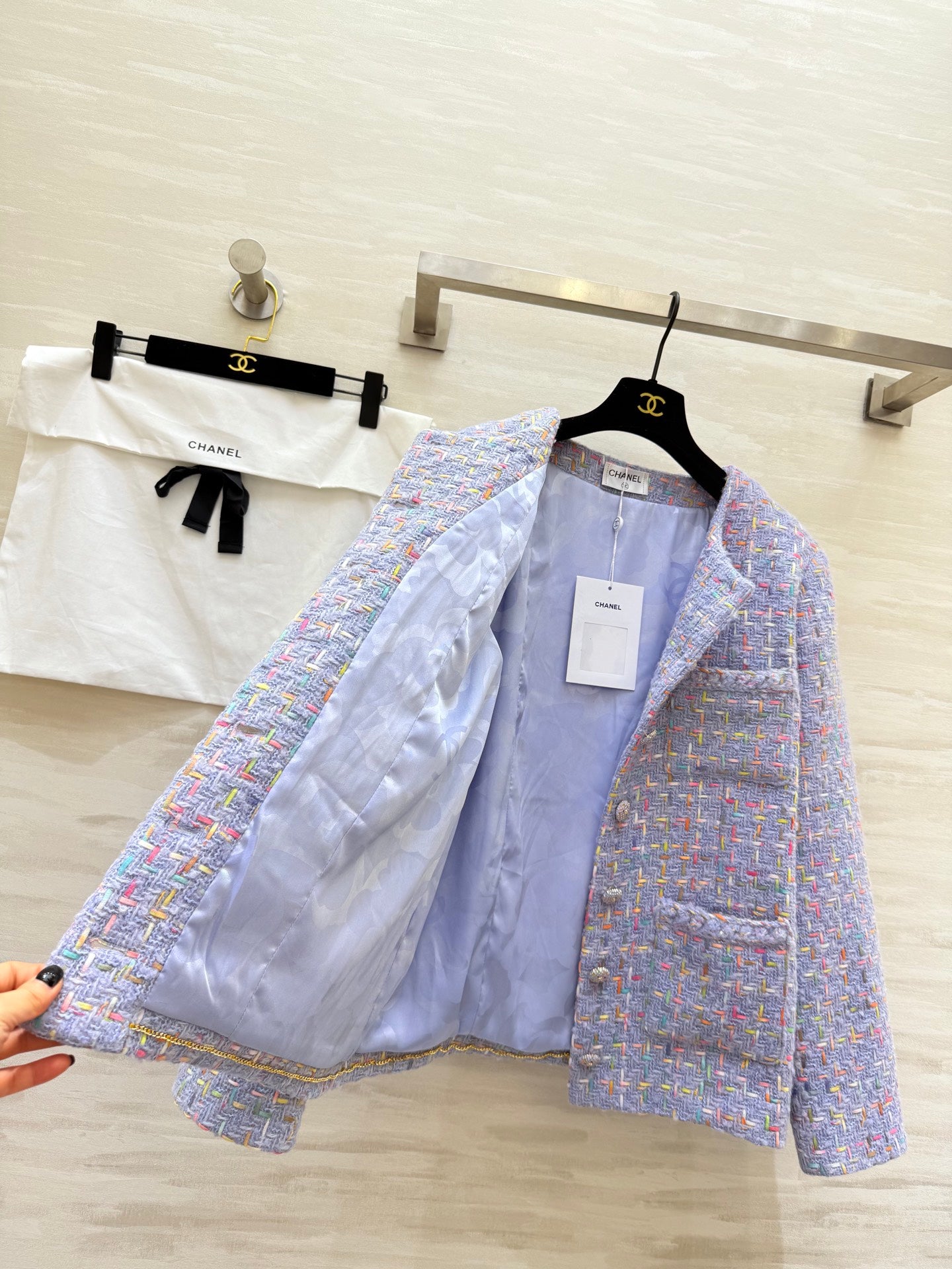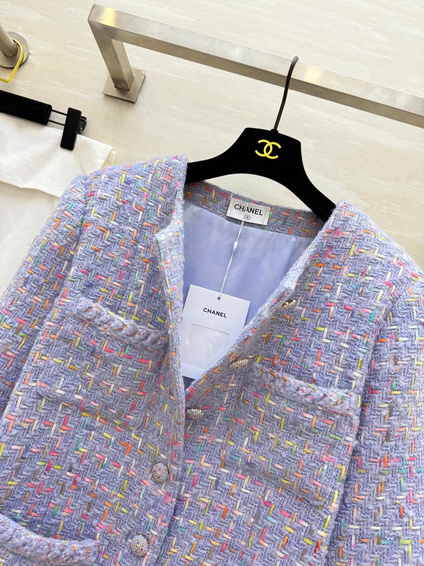 Chanel 2025 Mid-Length Coat Purple Wool Tweed Fabric 319534