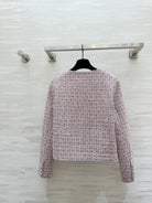 Chanel 2025 Rhinestone Chain Jacket Pink Woven Tweed Fabric 319510