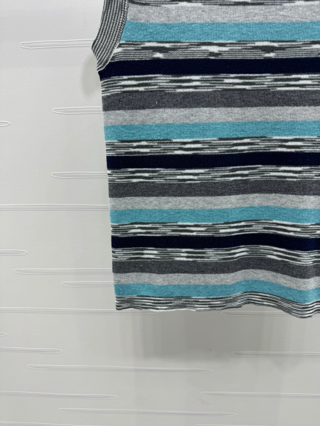 Chanel 25 Sleeveless Striped Top In Blue And Gray