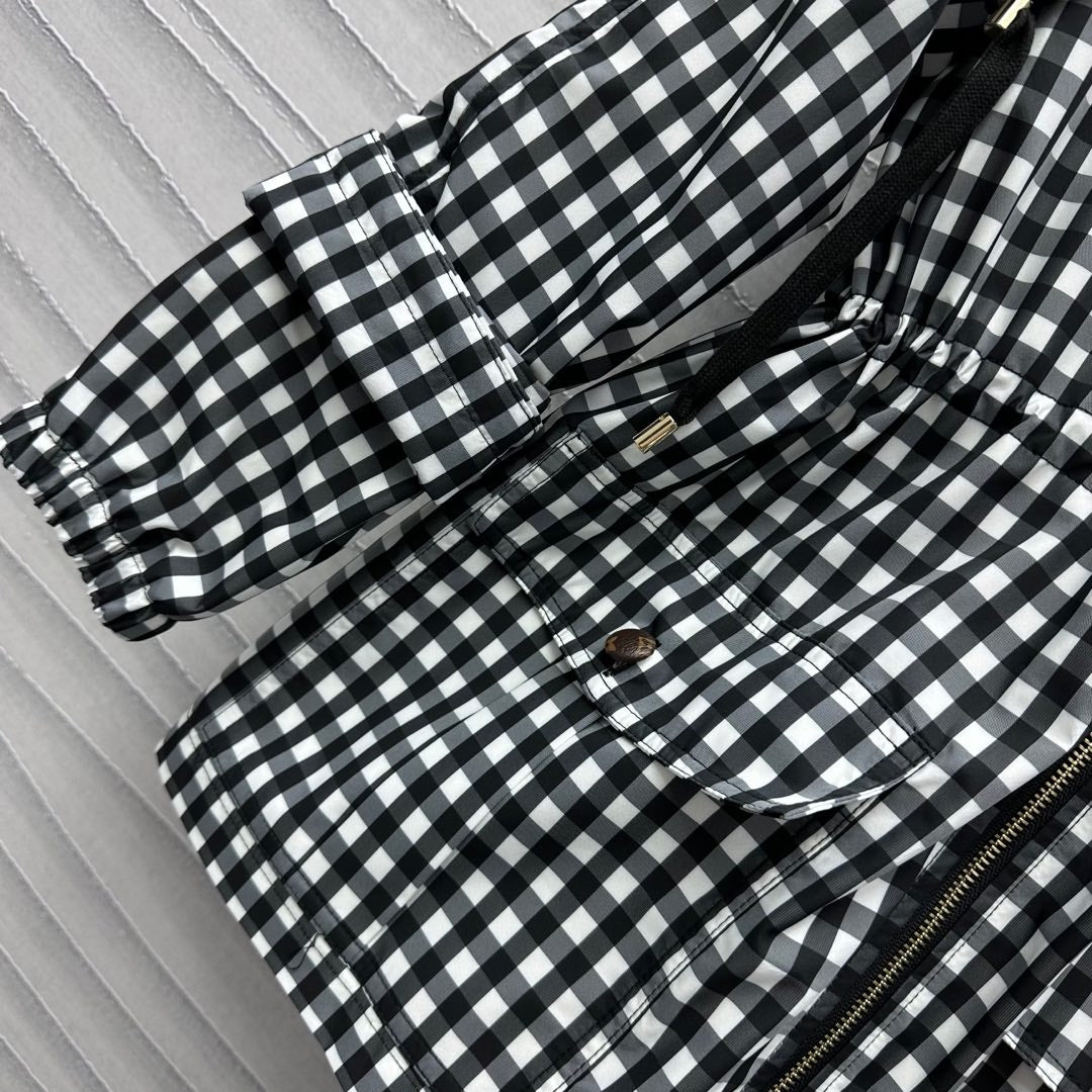 Lv Check Hooded Black White Parka 224851