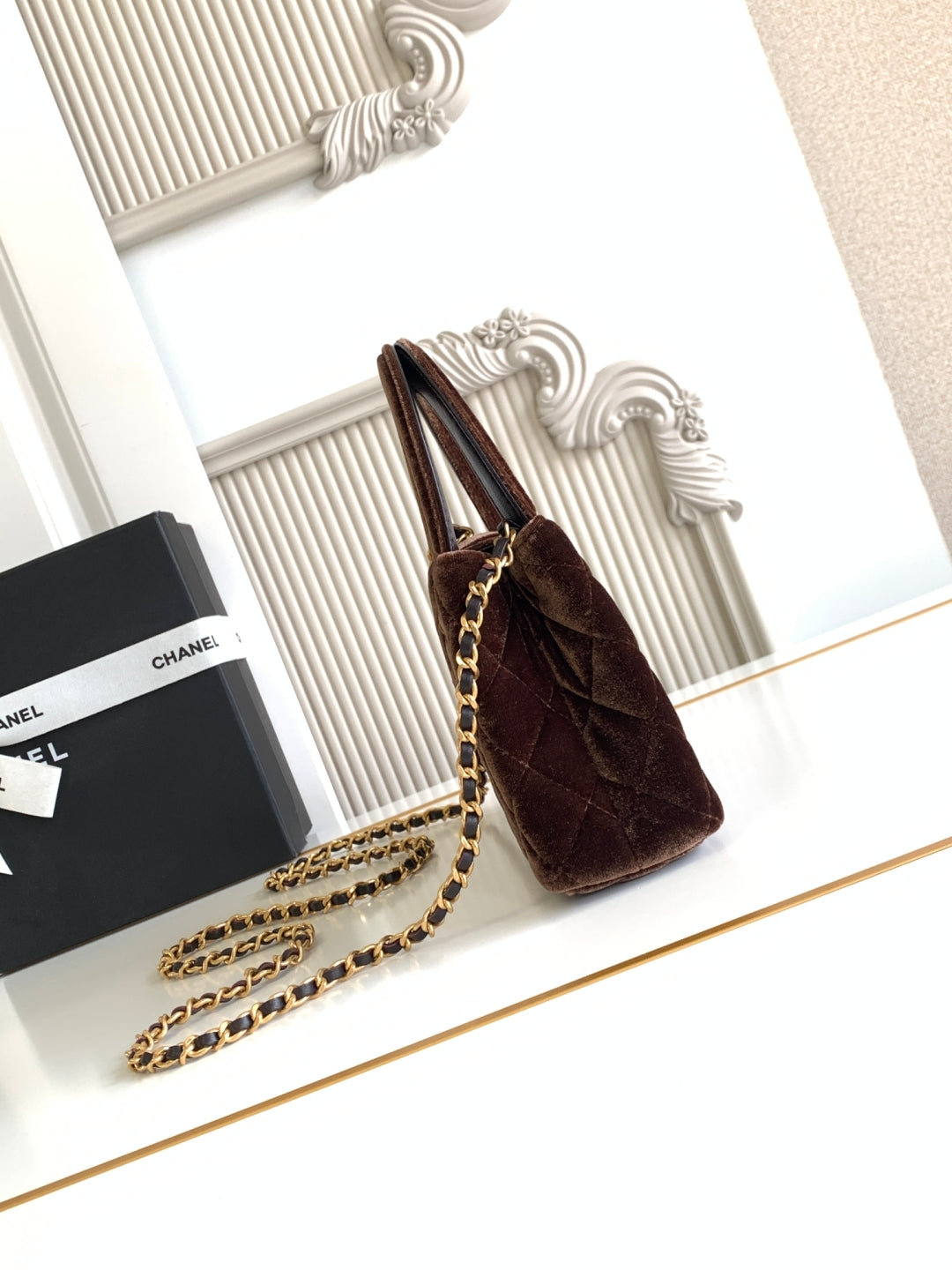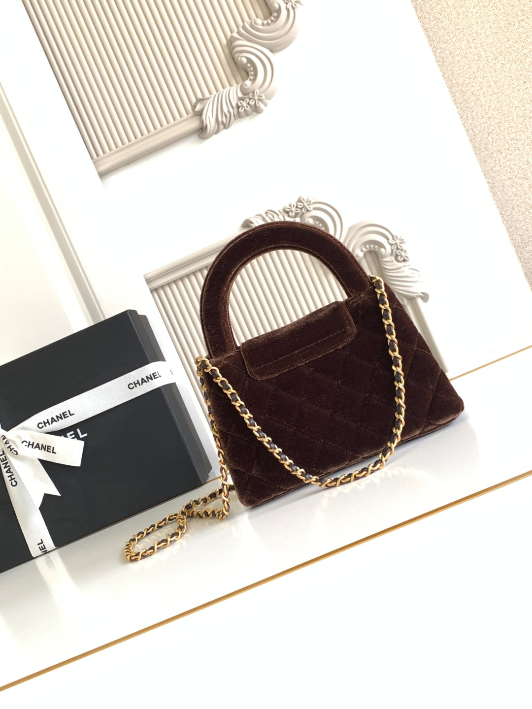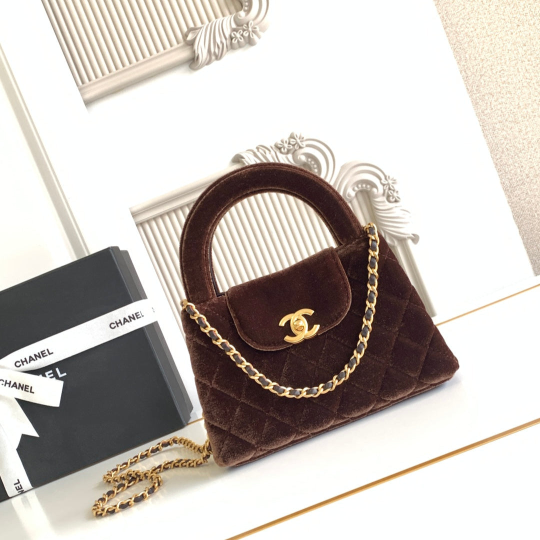 cc 24a nano 19cm kelly shopper bag chocolate brown velvet