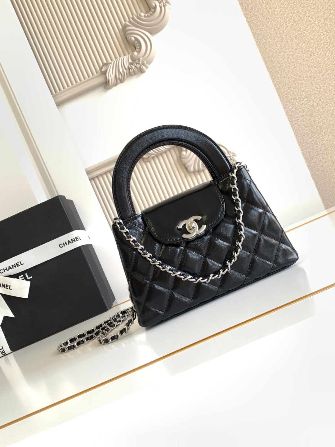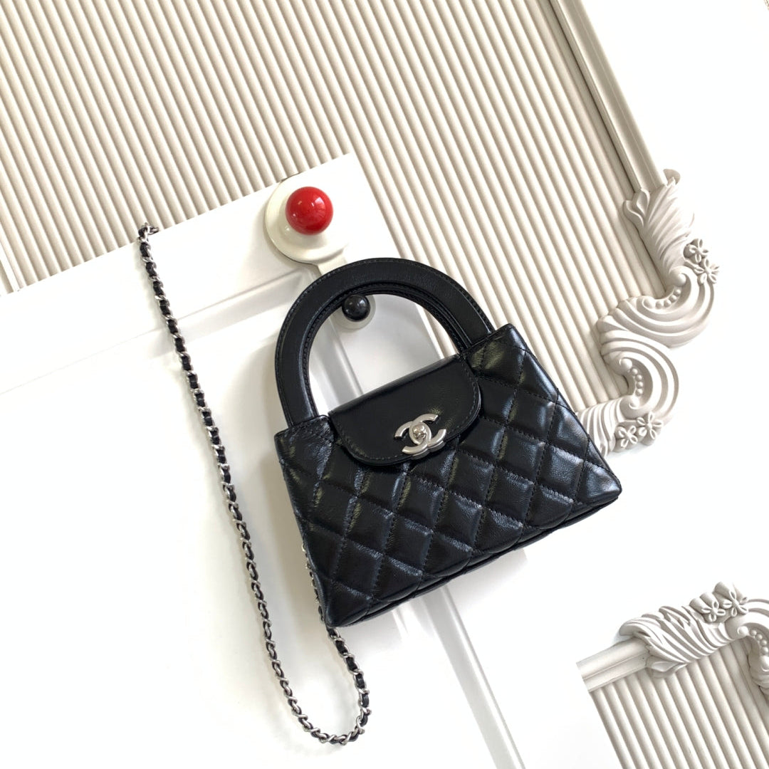 cc 24a nano 19cm kelly shopper bag black lambskin sliver hardware