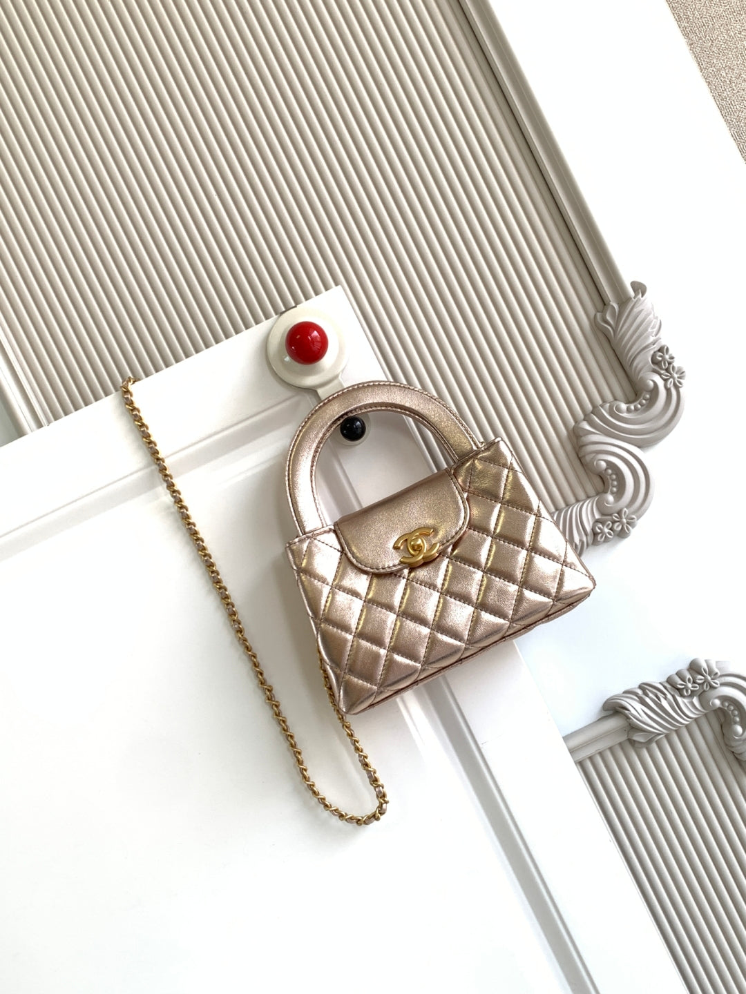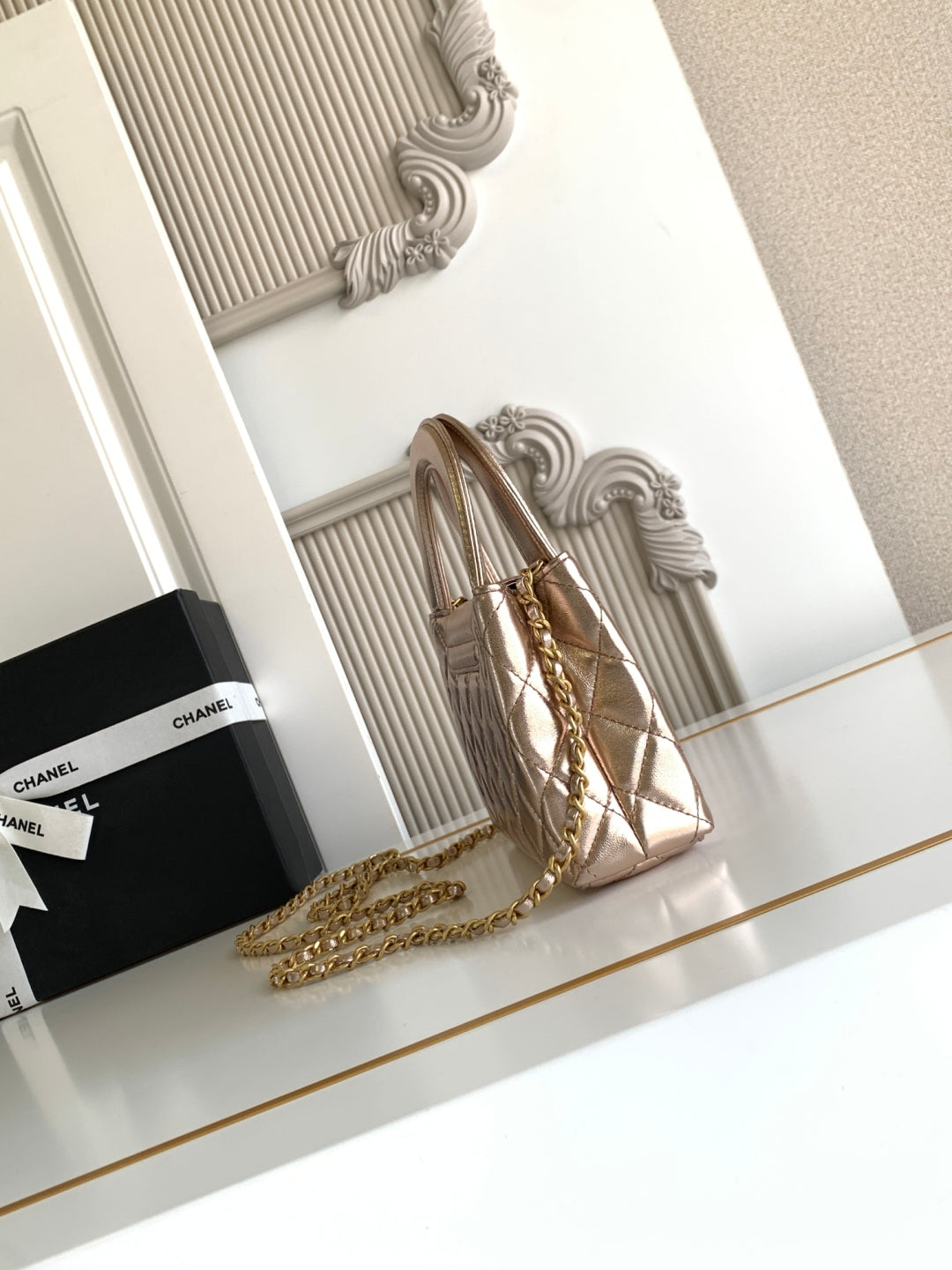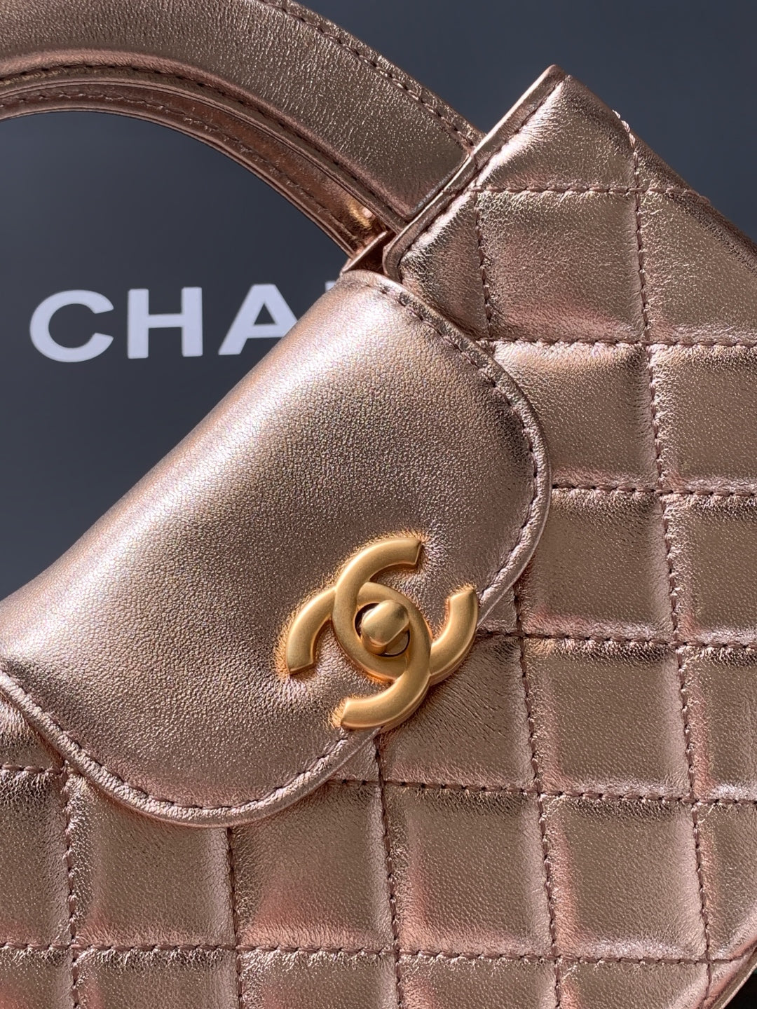 cc 24a nano 19cm kelly shopper bag metallic rose gold lambskin