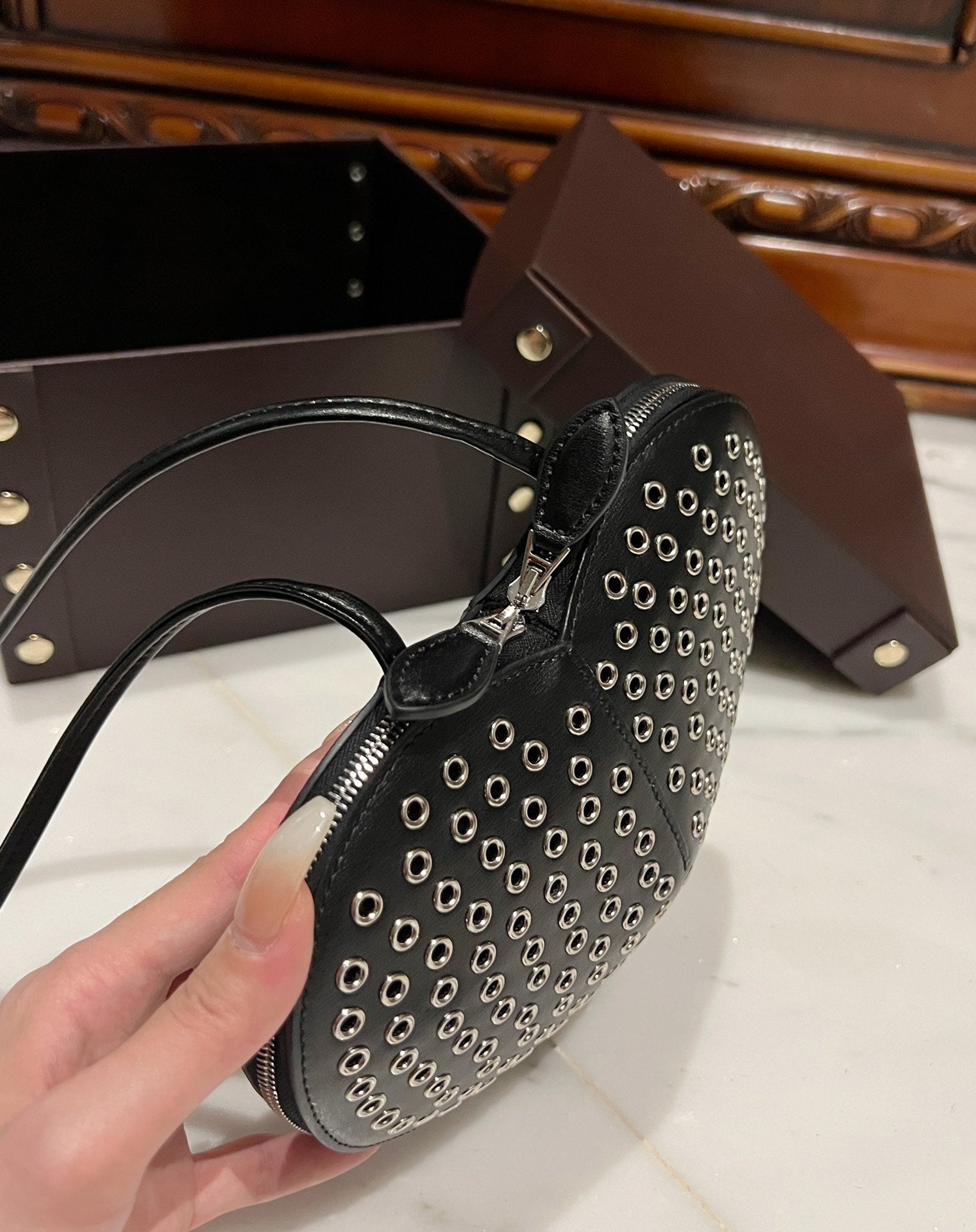 Le Coeur 21cm Black Metal Rivet Calfskin Shouder 243048