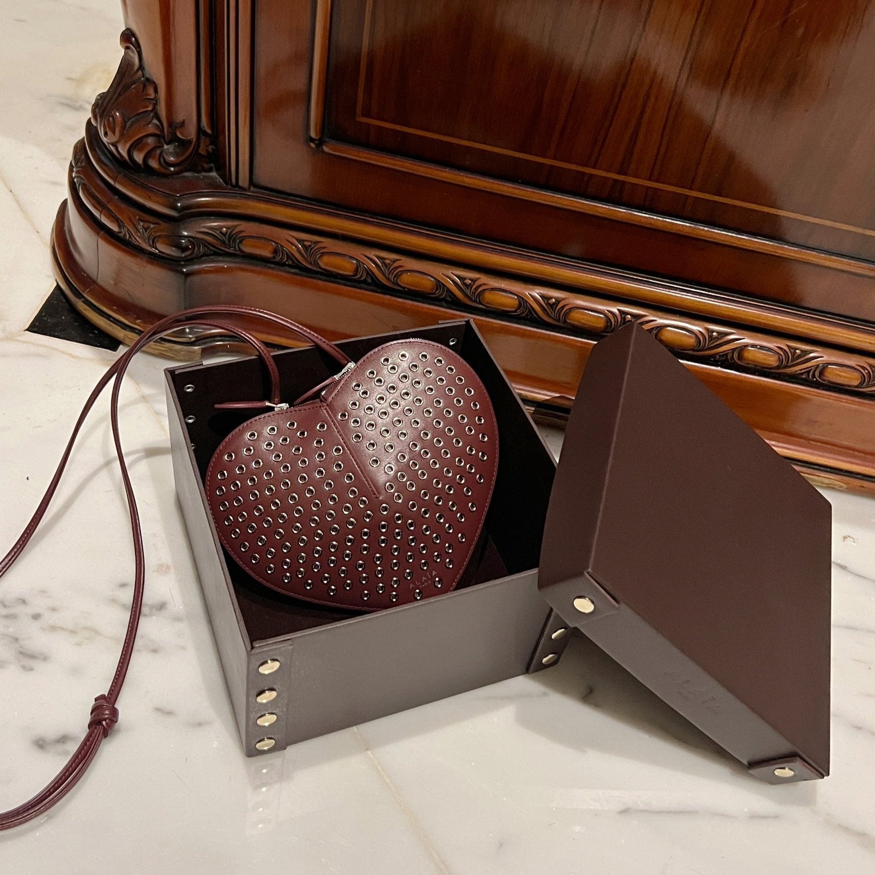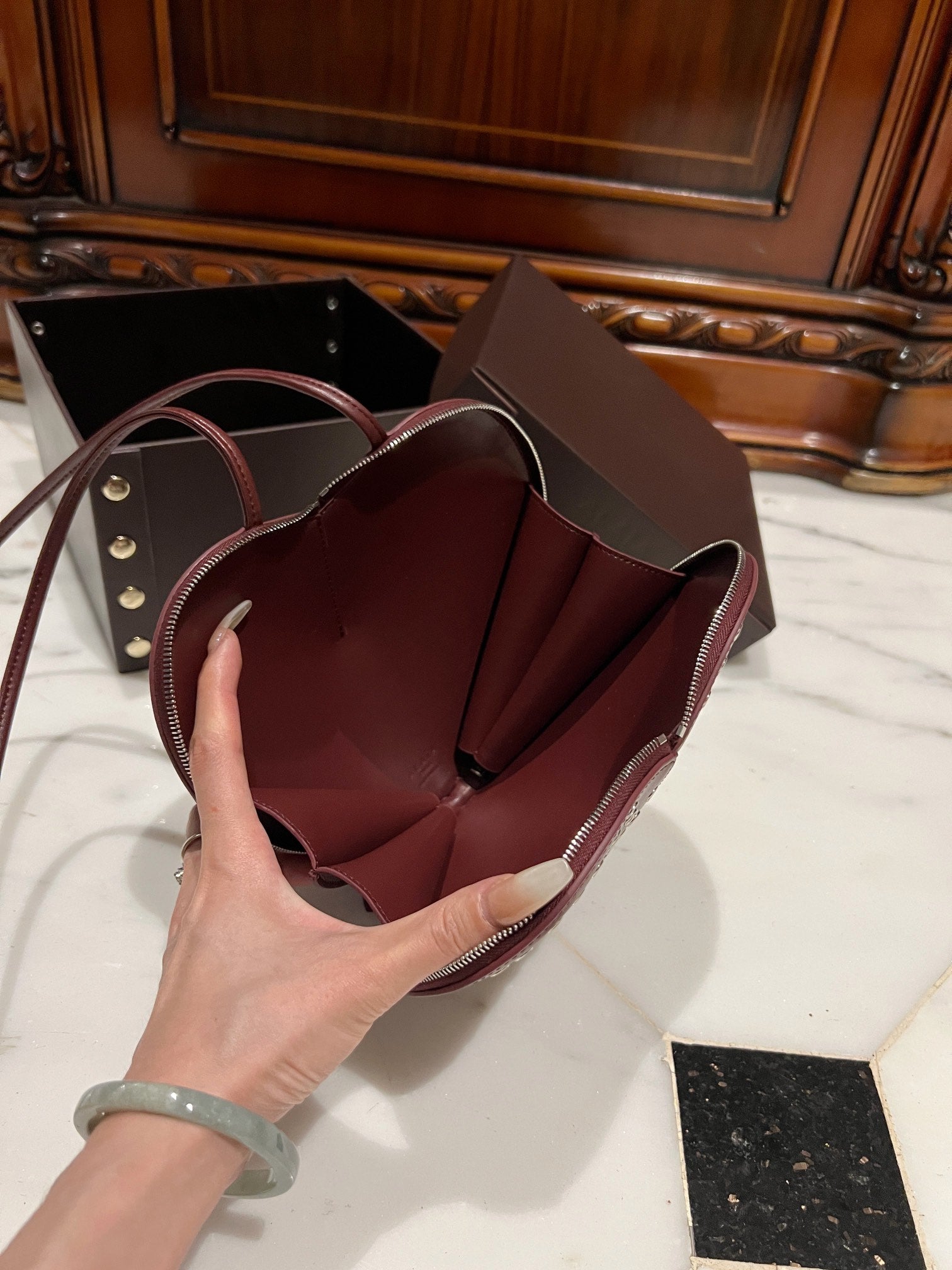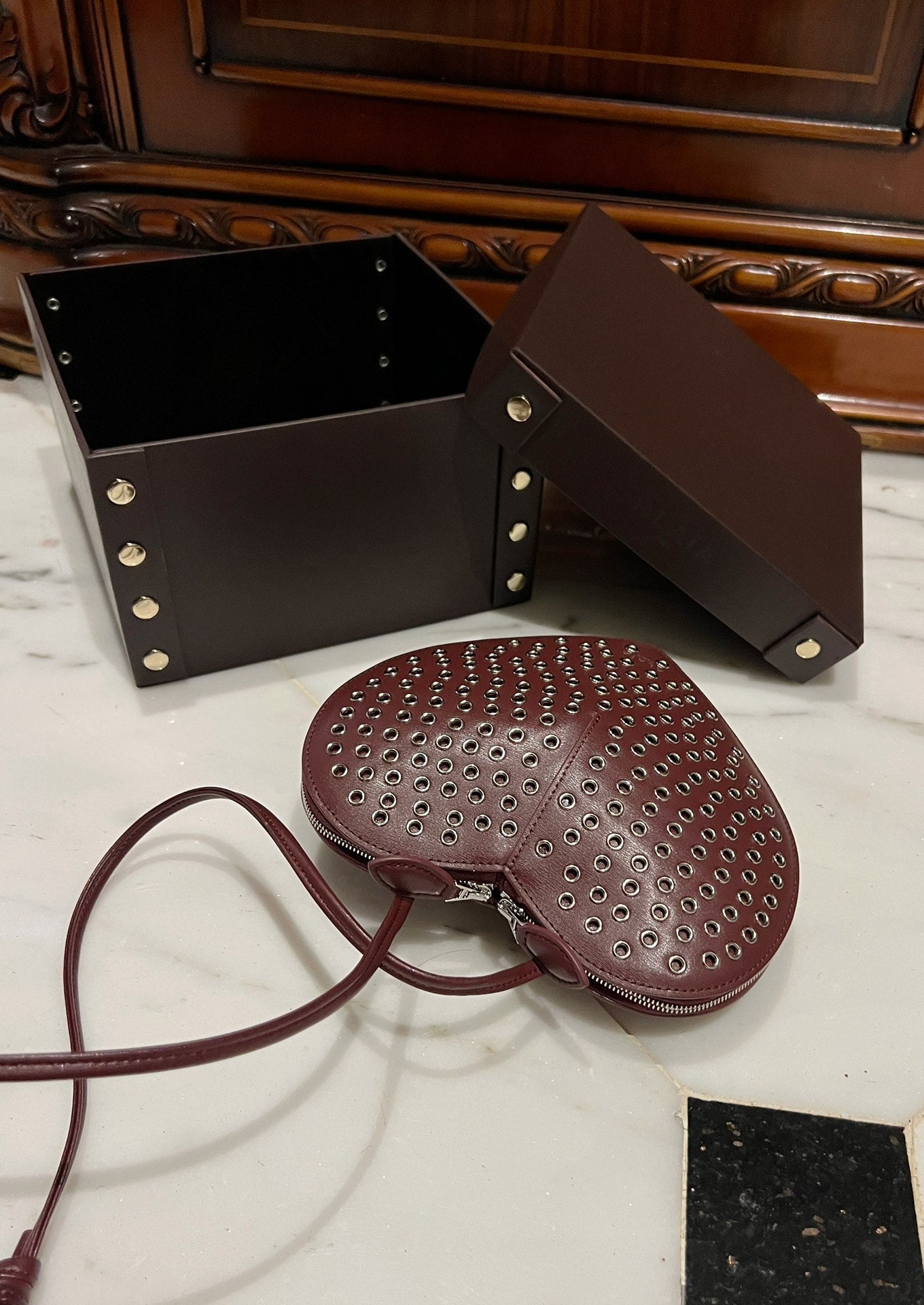 Le Coeur 21cm Burgundy Metal Rivet Calfskin Shouder 243047