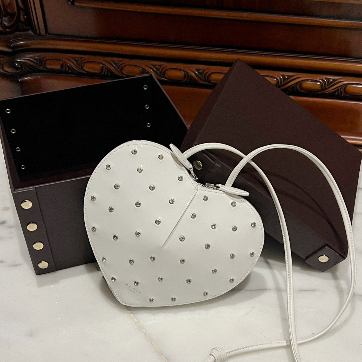 Le Coeur 21cm White Diamonds Calfskin Shouder 243041