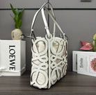 LOE 32 ANAGRAM CUT-OUT CROSSBODY IN WHITE CLASSIC CALFSKIN AND CANVAS