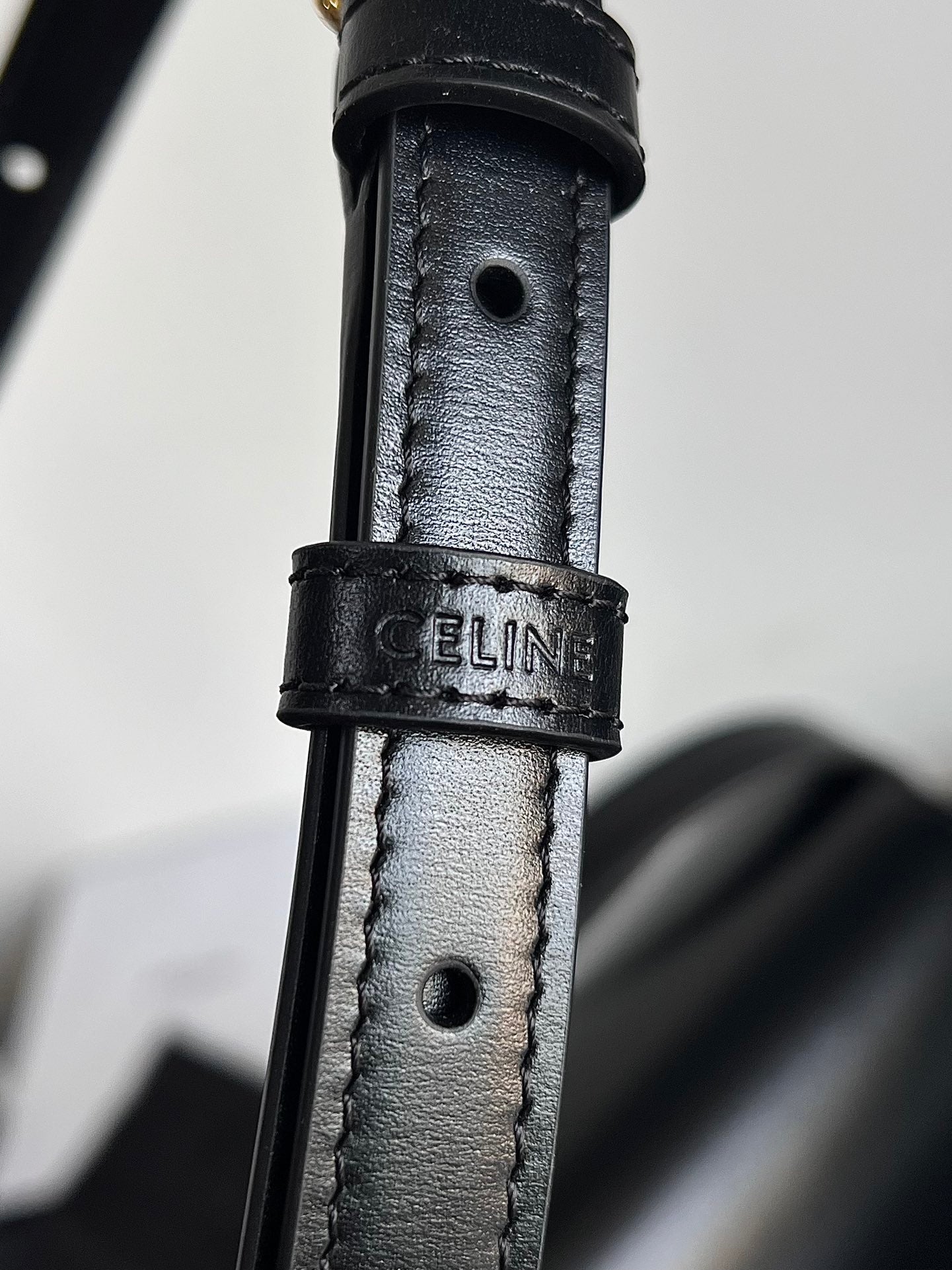 - Color: Black leather, Gold hardware
