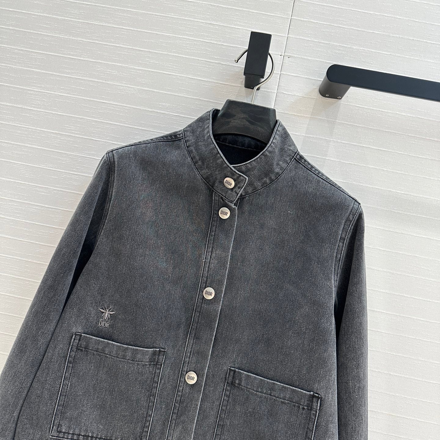 CD 25 Round Neck Suit Small Jacket Blue Cotton Silk