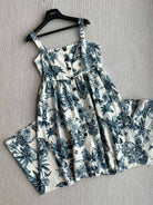 CD 25 Pattern Printed Suspender Dress White Blue Cotton Polyester