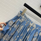 CD 25 Pleated Flared Forest Long Skirt Blue White Cotton