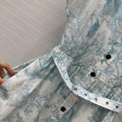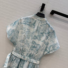 CD 25 Sauvage Jouy Print Button Dress Light Blue mix White Cotton