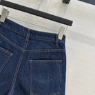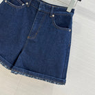 CD Denim Shorts With Old Flower Pattern Blue Cotton