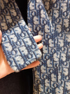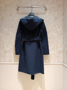 CD Hooded Long Coat Navy Blue Wool Silk