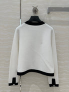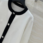 CD Round Neck Cardigan Jacket White Wool Cotton