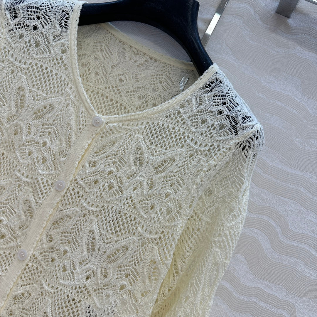 CD 25 Knitted Short-sleeved Top Blue and White Cotton