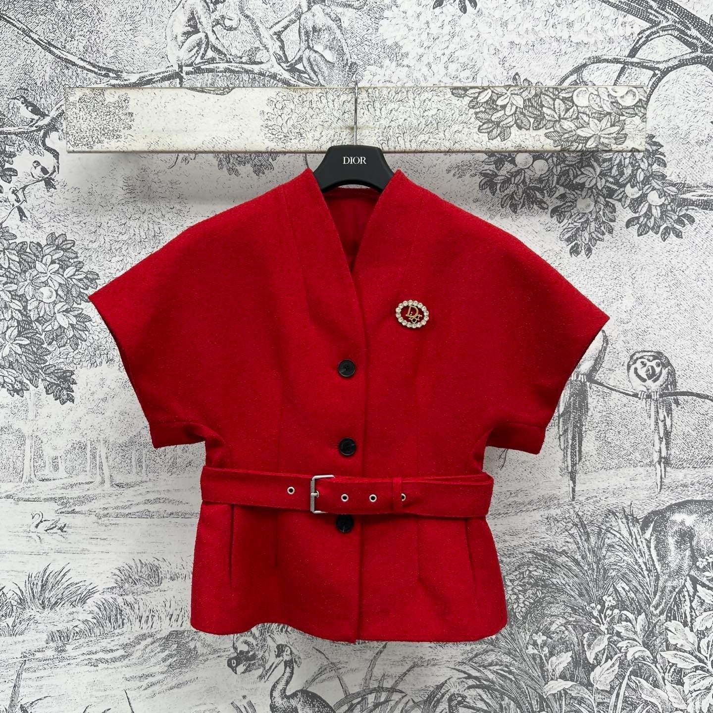 CD 25 V-neck Short-Sleeved Jacket Red Cotton