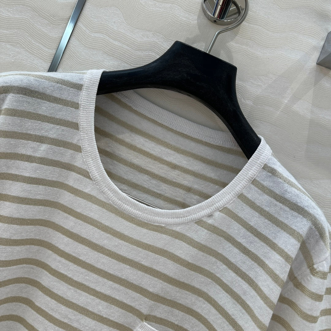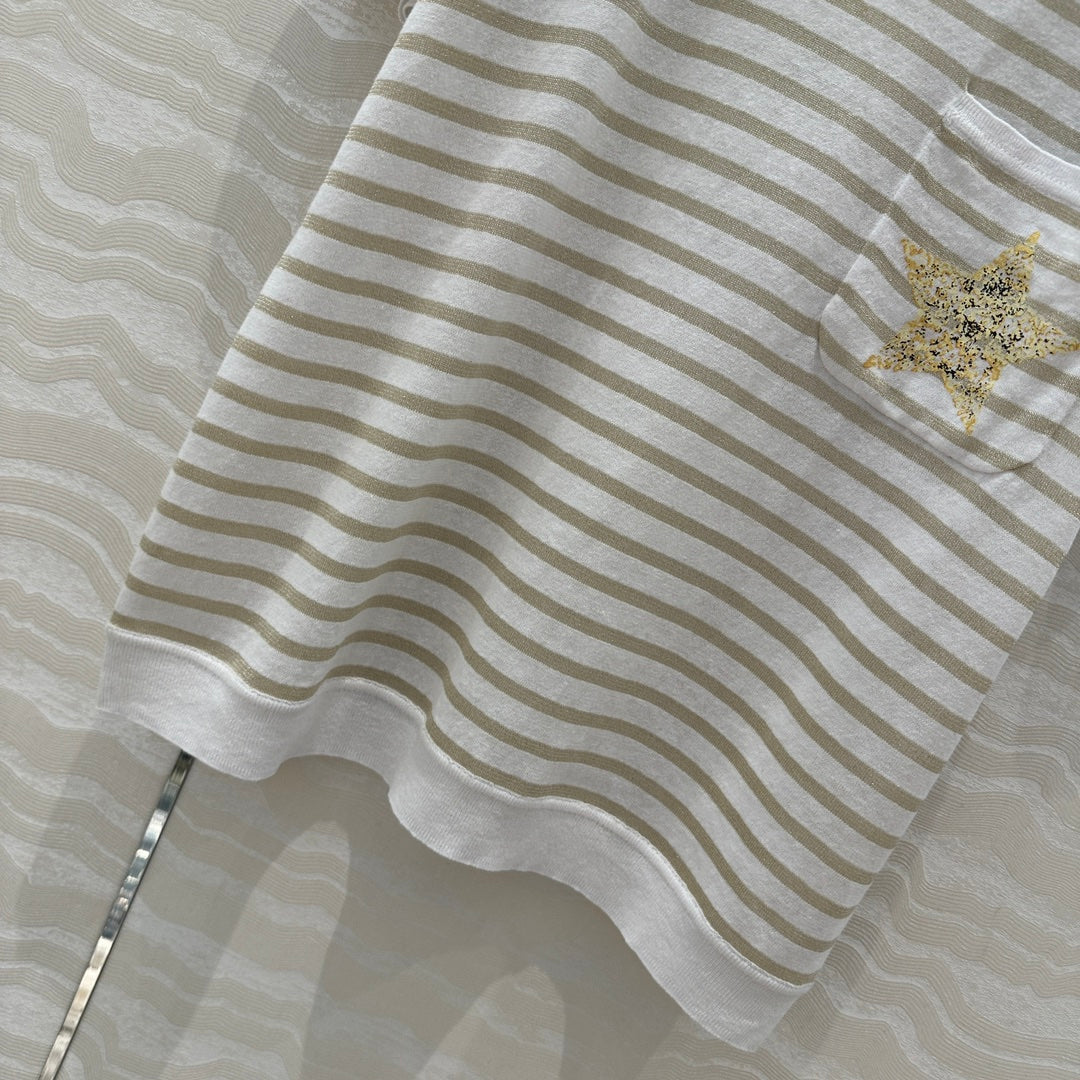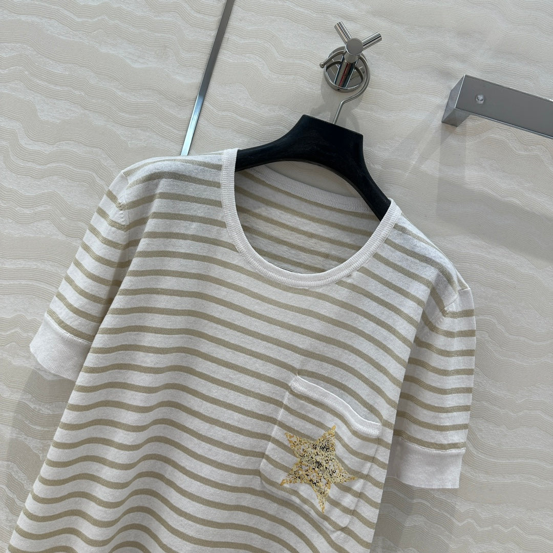 CD 25 Hollow Polo Knitted Short-sleeved Top White Silk Wool
