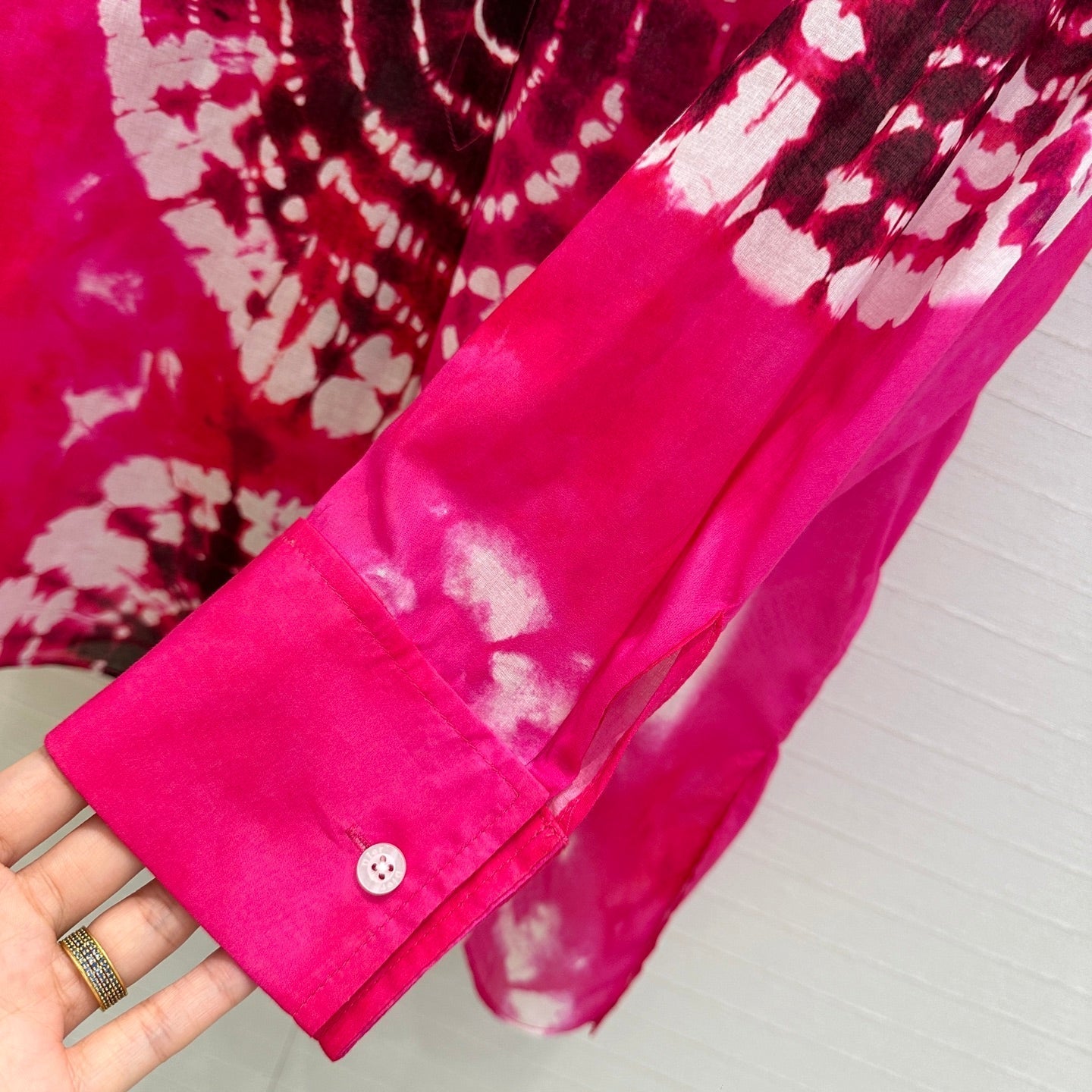 CD 25 Dopamine Dye Pattern Long-sleeved T-Shirt Pink Cotton