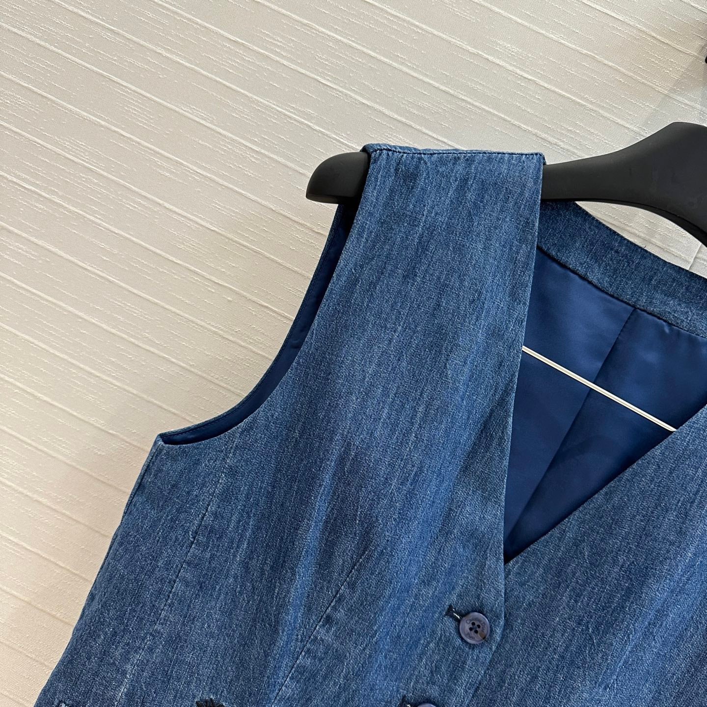 CD 25 Embroidery Knitted Vest Top Black Polyester Cotton