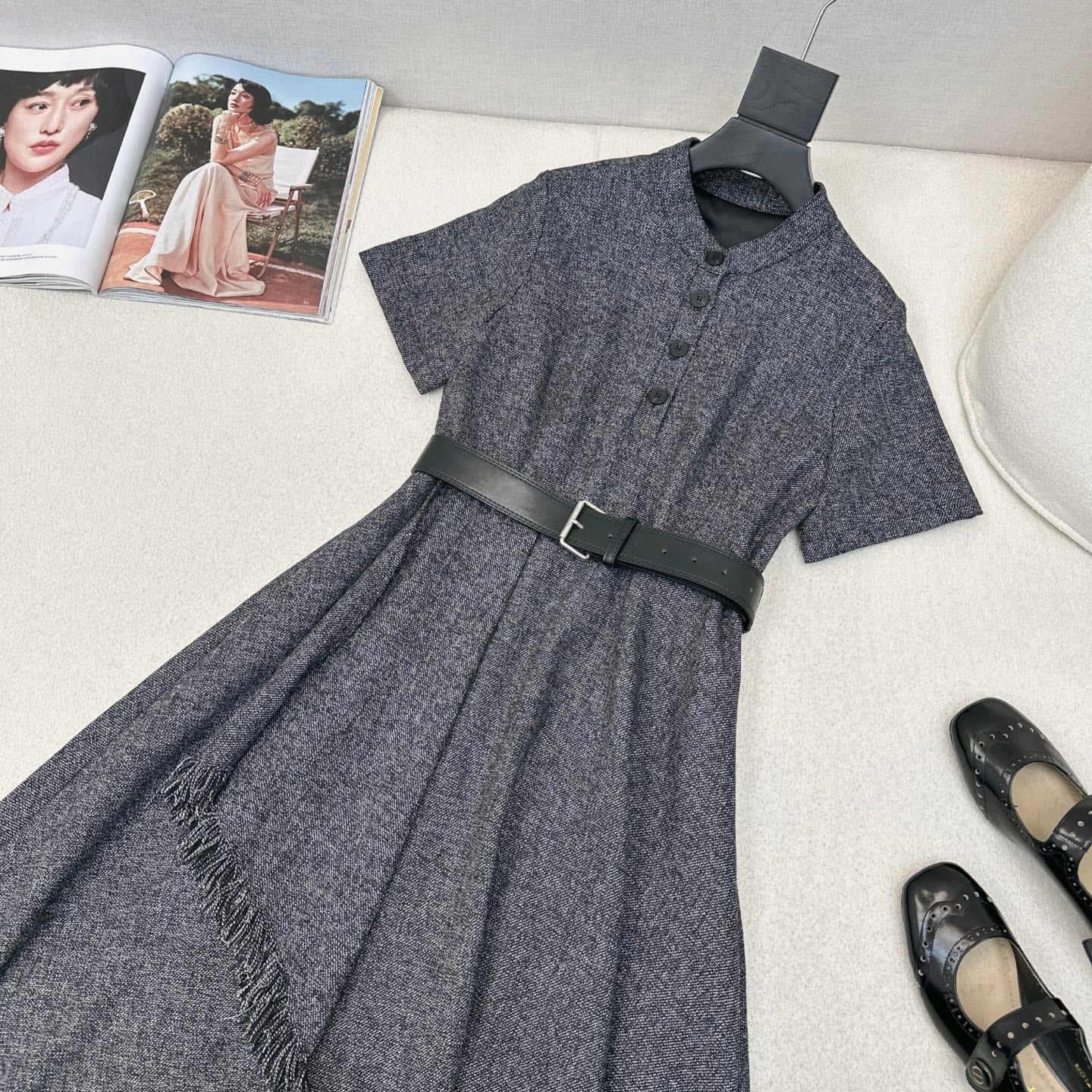 CD 2025 Short-sleeved Shirt Dress Light Beige Cotton