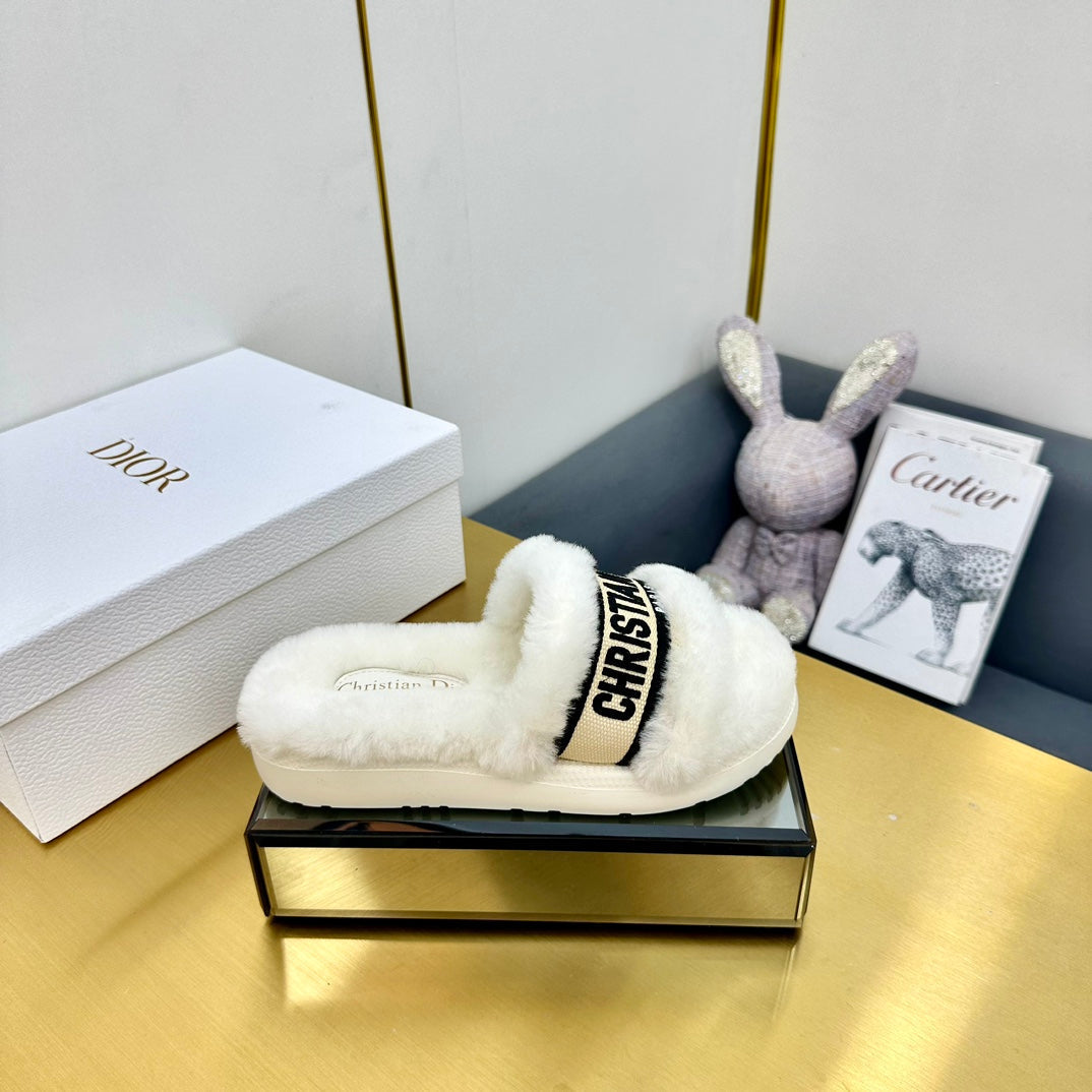 CD Dway Slide In White Mix Black Wool Fleece Lining And Canvas Fabric 111079