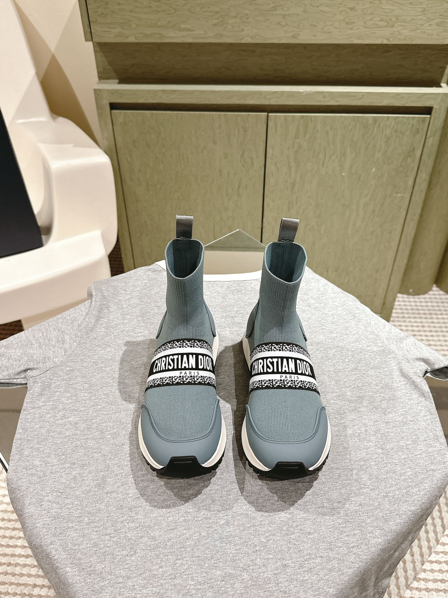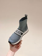 CD High-Top Sneaker 40mm Blue Grey Stretch Wool And Lambskin