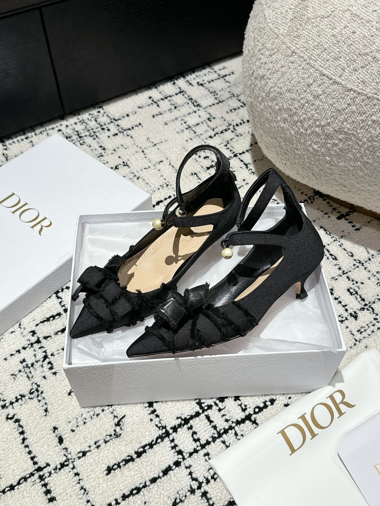 CD Adiorable pump 45 Black Fringed Grosgrain