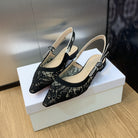 JAdior slingback flat transparent mesh embroidered black butterfly motif