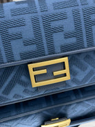 Fend Baguette Blue Canvas Bag 27 with FF Embroidery Ghw