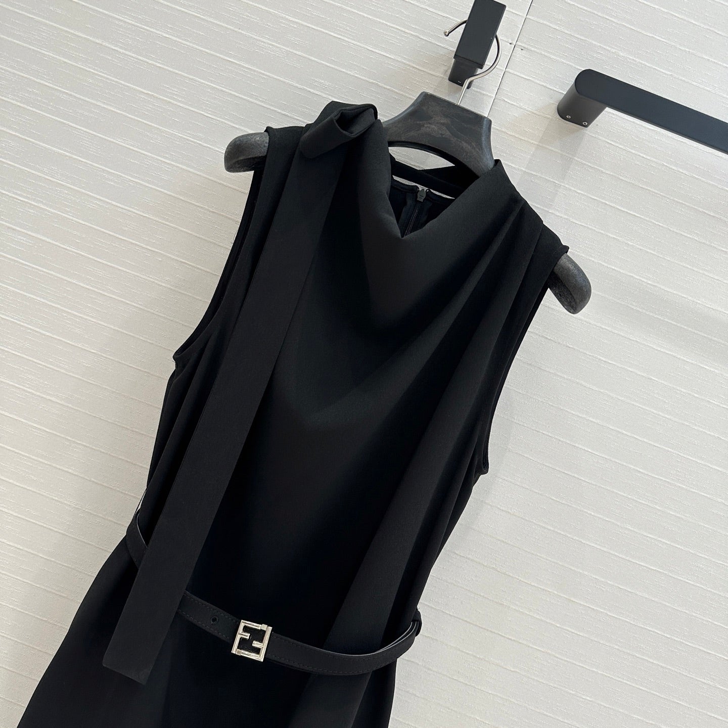 Fendi 2025 Long Pleated Lace Dress Black Polyester