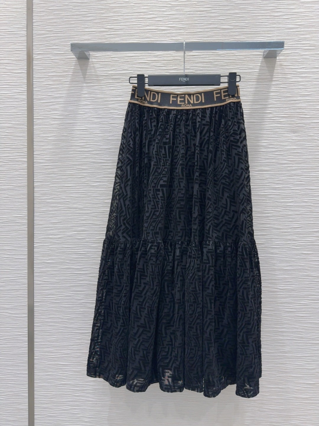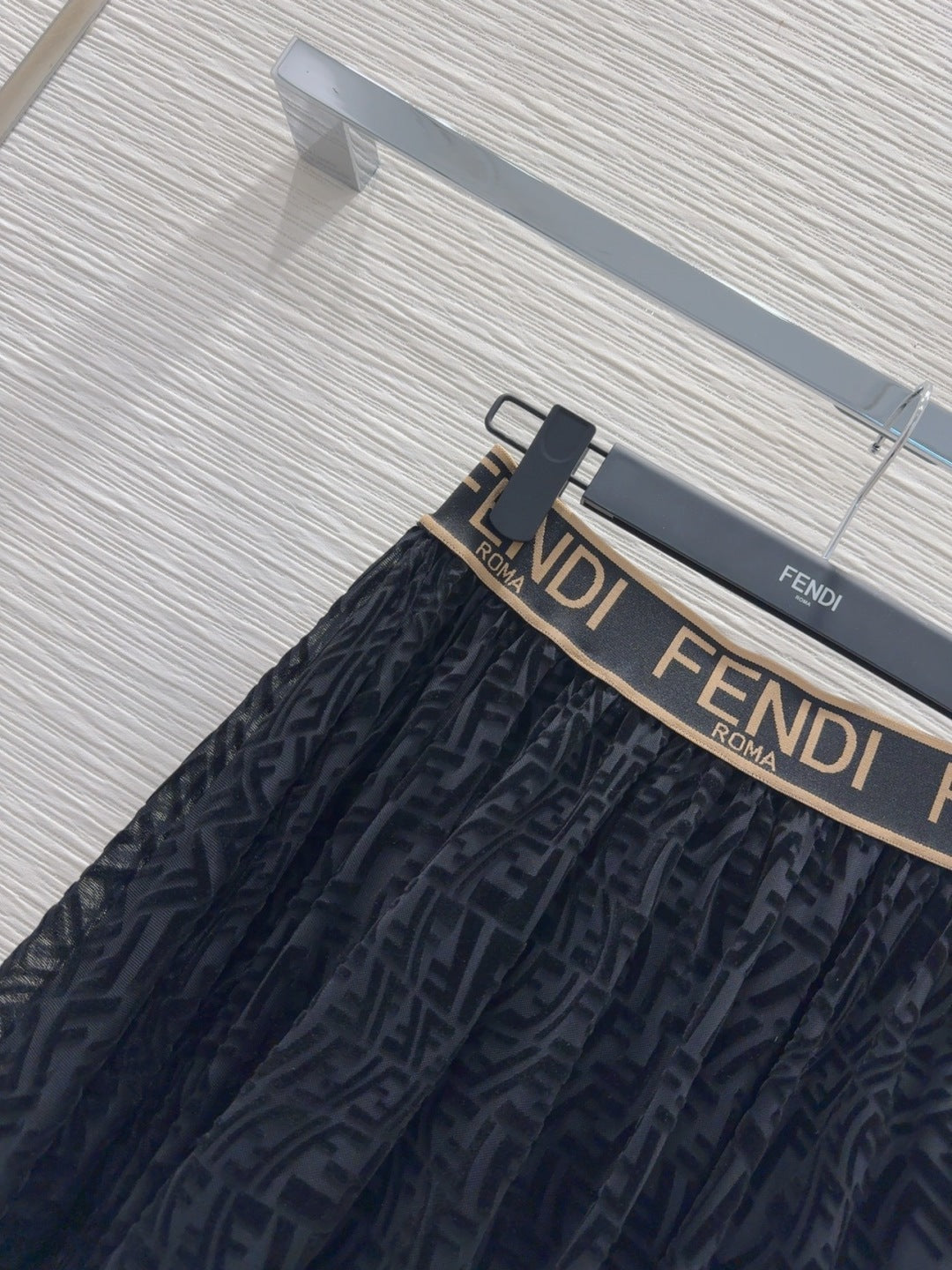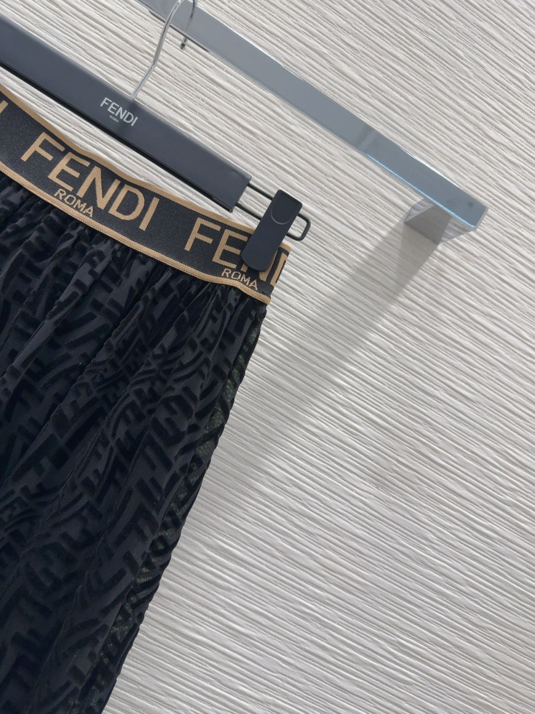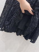 Fendi 2025 Long Pleated Lace Dress Black Polyester
