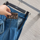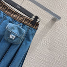 Fendi 2025 Pleated Denim Skirt Blue Cotton