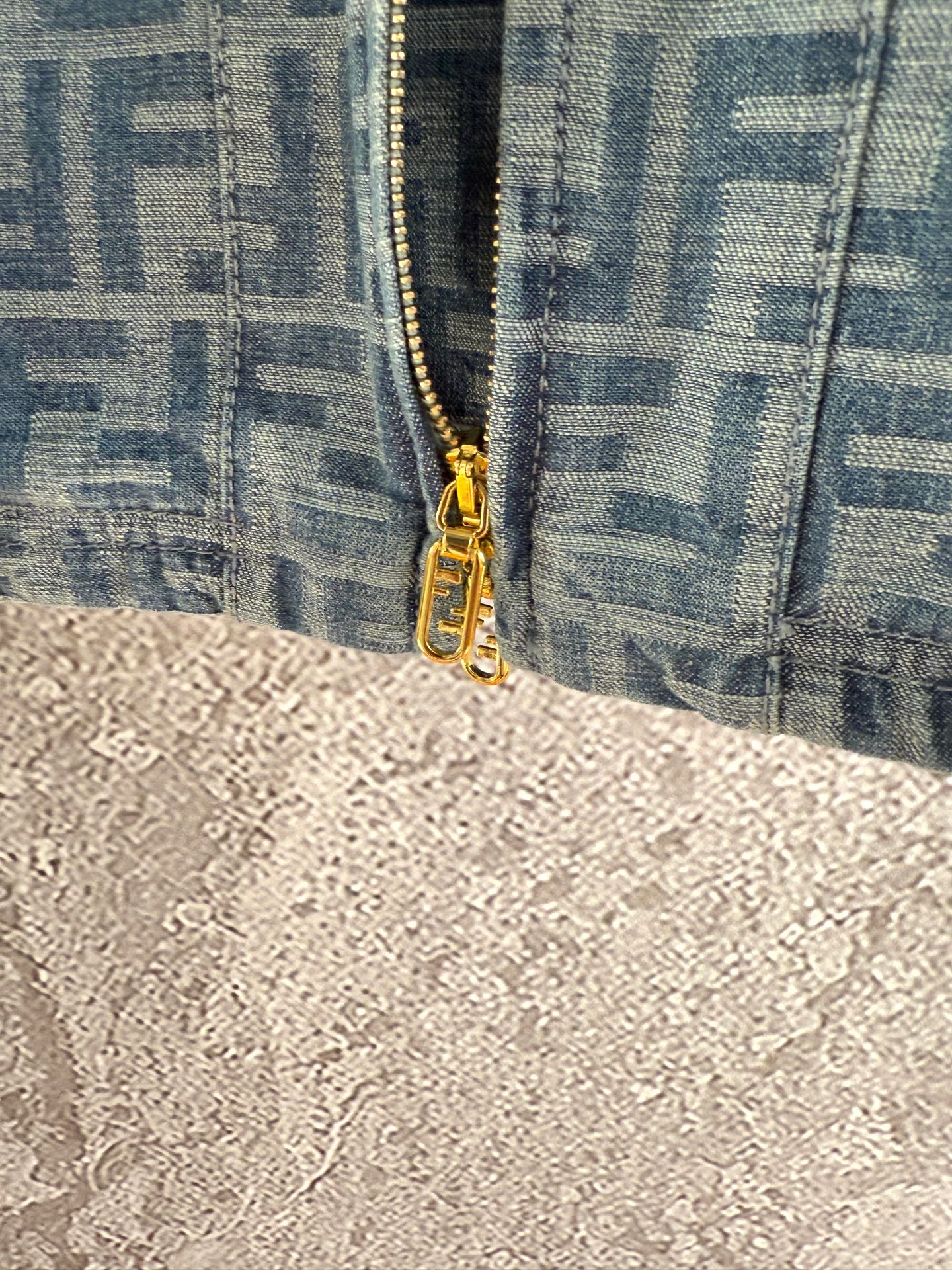 Fendi Old flower denim jacket Blue Gray Cotton Linen