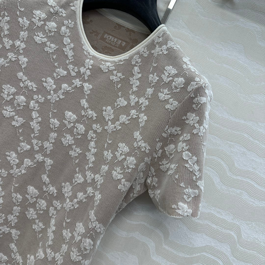Fendi 25 Embossed Letter T-shirt Ice blue Cotton
