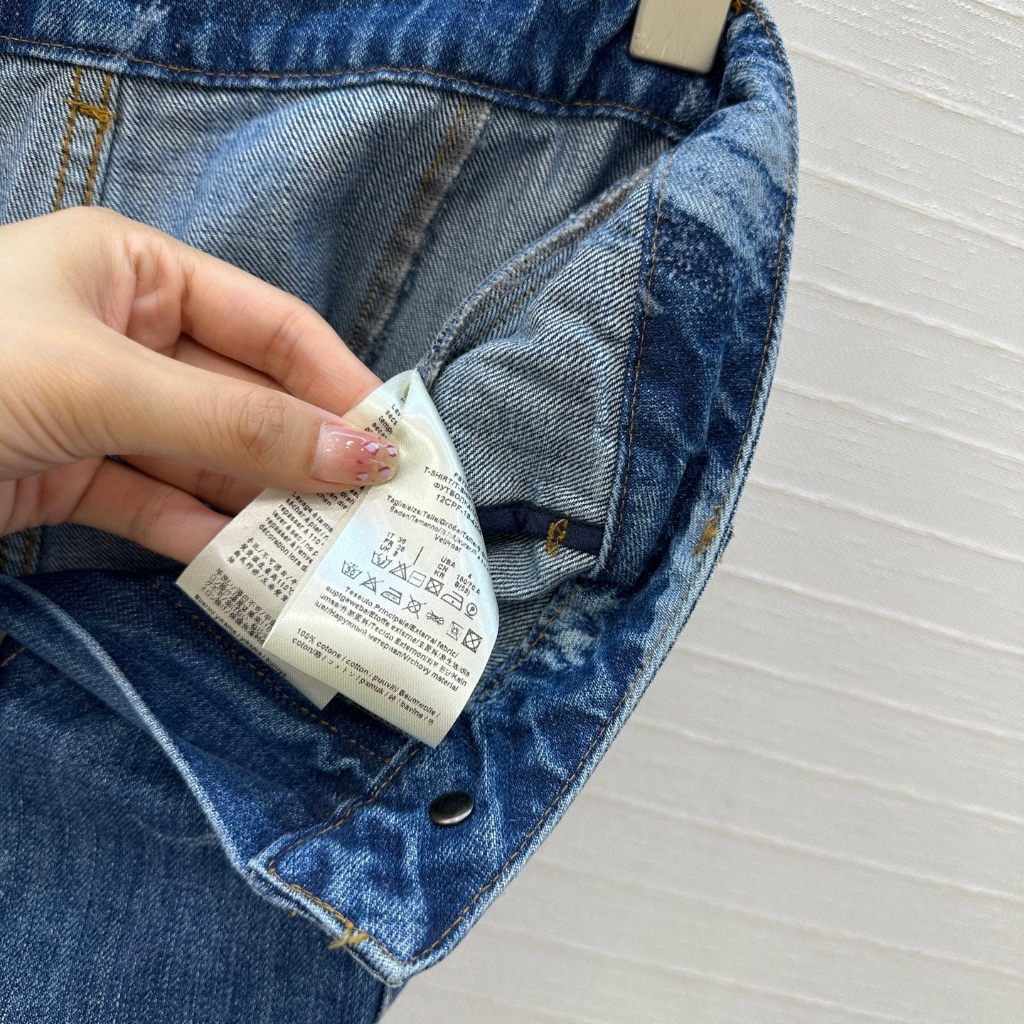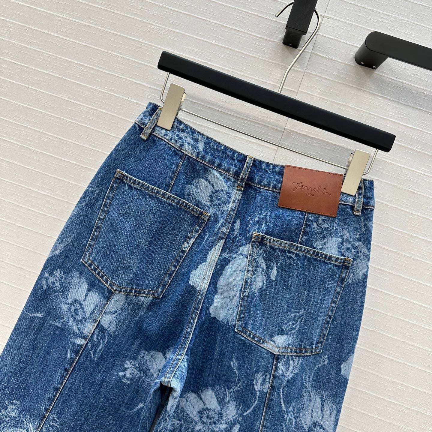 Fendi Flower Denim Straight Pants Blue Cotton