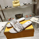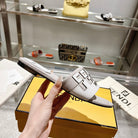 FF Women Roma Signature White Grey Canvas Leather Slide