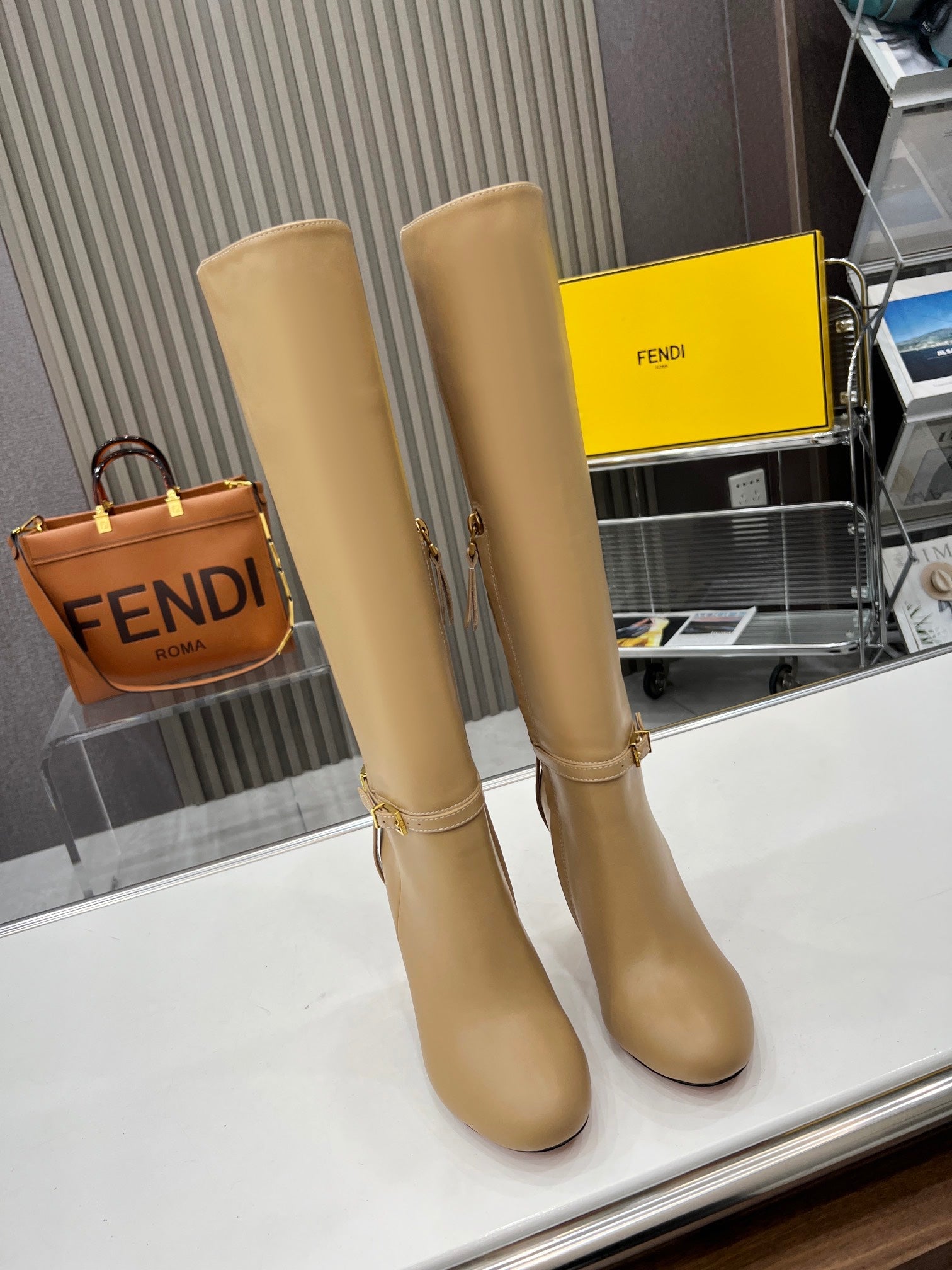 FENDI knee boots high heel beige cowhide 521211