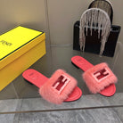 FENDI BAGUETTE MINK SLIDE SLIPPER IN ROSE RED FUR