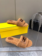 FENDI BAGUETTE SLIDE SLIPPERS IN CINNAMON BROWN WOOL