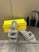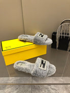 FENDI BAGUETTE SLIDE SLIPPERS IN GREY WOOL