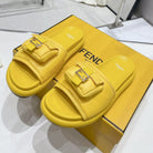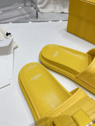 FENDI BAGUETTE SLIPPERS IN NAPLES YELLOW LAMBSKIN WITH GOLD HARDWARE
