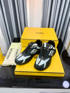 FENDI FASTER TRAINER IN BLACK SUEDE MIX WHITE CALFSKIN