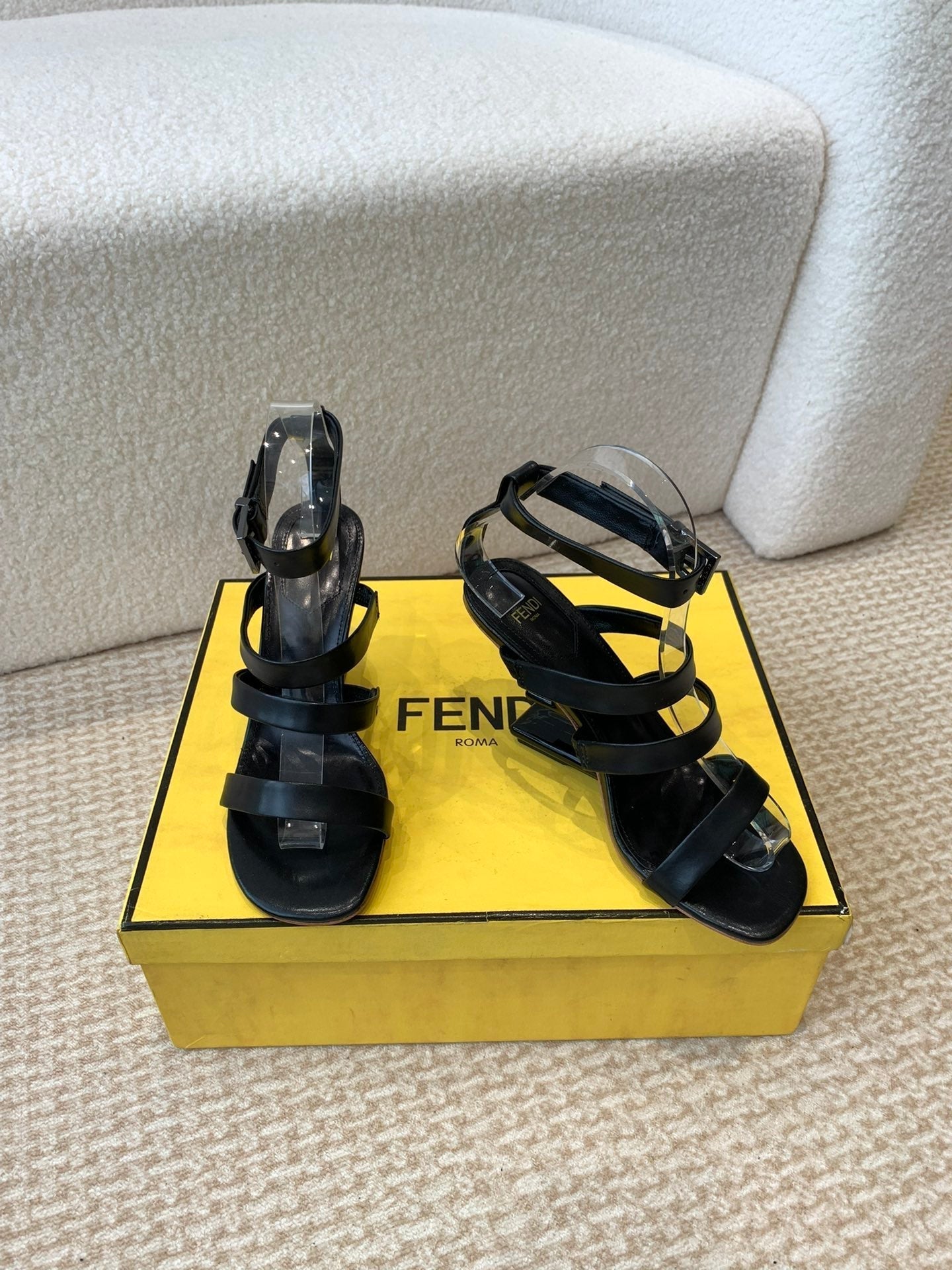 FENDI HIGH SANDAL 10 CM IN BLACK CALFSKIN